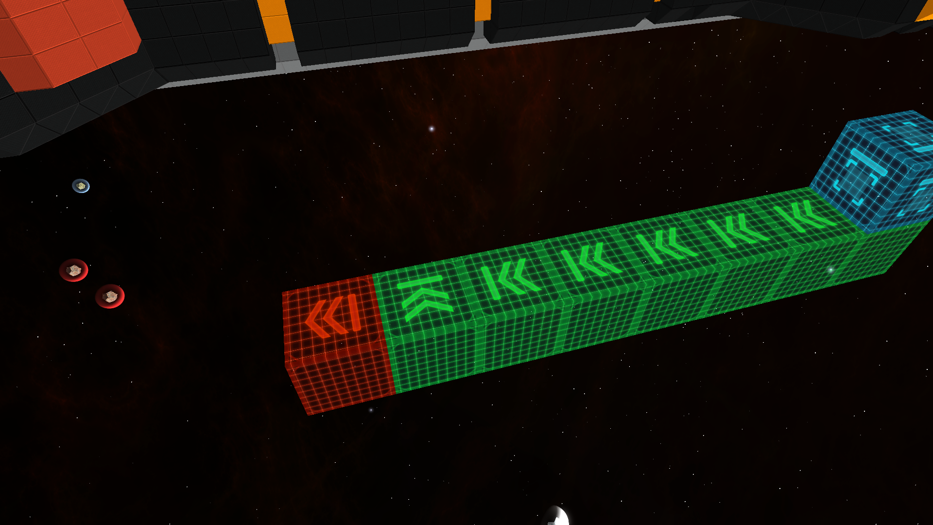 All rails with a speed of zero will temporarily forget that they are set to zero after sector loading is complete. As a result, docked entities may move onto rails that are not speed controlled.