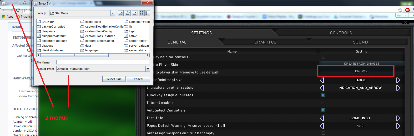 When you click on Browse for the Path to player skin option, it opens up a select skin menu. However, after moving it (and playing in windowed mode) I've noticed that there was another menu instance with a very small size/no content.