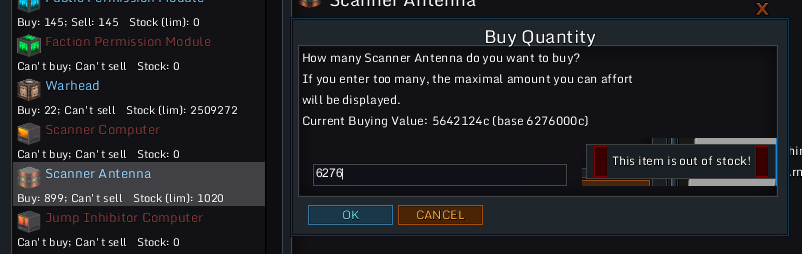 Pressing OK doesn't bring it to 1020 but to 6276 which is the actual stock of the item, error message is about "Item out of stock"