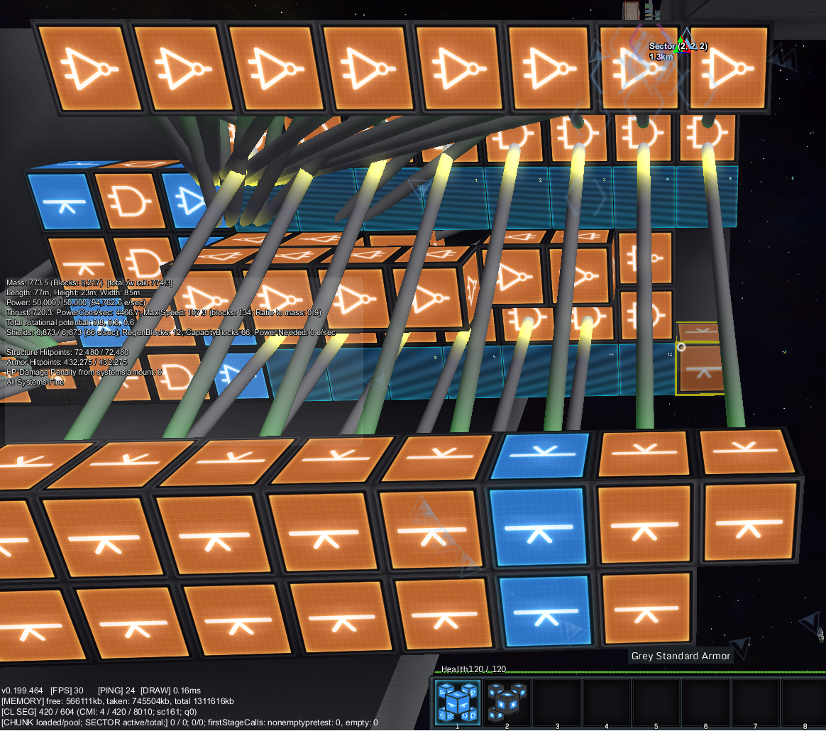 {F11036}Logic over a medium distance with a group of blocks updating has reliably struggled to work for me, as asked I will be including my blueprint of the malfunctioning ship, included as a ZIP here