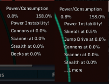The following example has 3 active consumers in the following priority: Thrusters -> Shields -> Jump Drive. It switches between both constantly when all 3 of these are under constant usage.