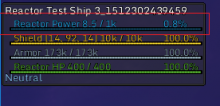 - Reactor Power 500 e/sec 200% used -> power unstable: orange color if power used > 100% and internal capacity > 10% or so