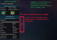 - Power regen of the selected reactor should be shown here as well, even if it is already in the "stats" panel, it's still important enough to have it here.