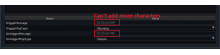 The values that allow for text input, cannot be longer than 10 characters. It should be much higher as most of these are supposed to be popup/console messages.