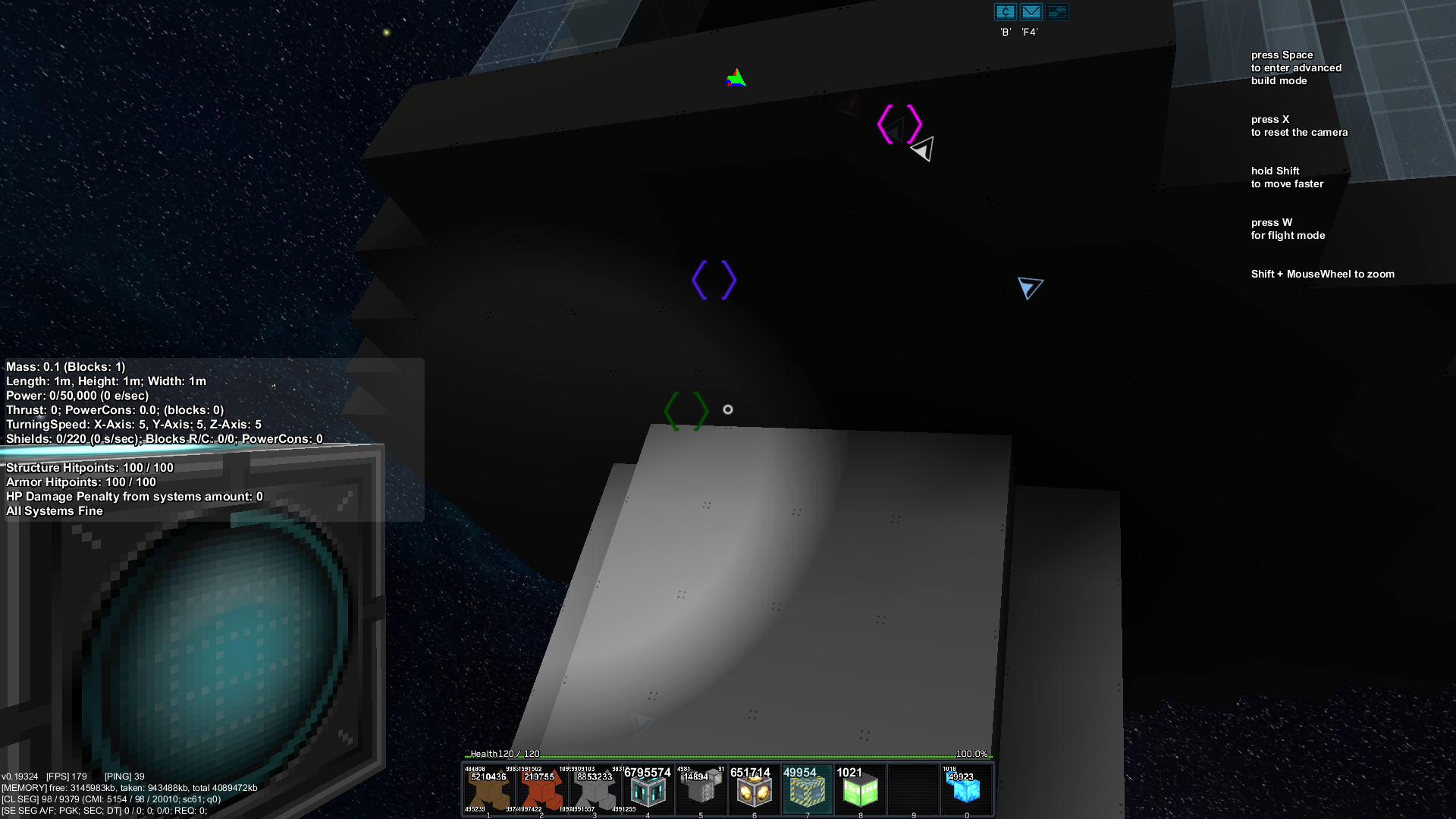 - the light rotates with your build mode camera's direction and also your ship cursor when in flight mode. Shipcore also emits light but not sure if that is intended or a bug.