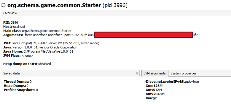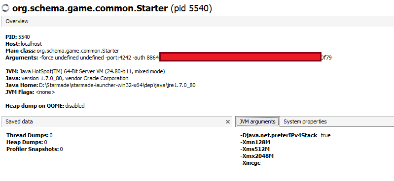 The -server option passed to the jvm is strangely not listed in your screenshot, but is present in the code.