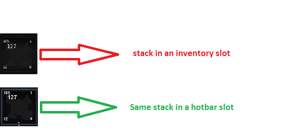 There's a big difference between hot-bar slots and inventory slots now, barely noticeable for normal slots (still readable) but for multi-slots it's pretty much impossible to read.