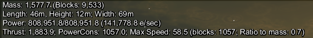 The thrust to mass ratio is using thrust block count, and not the amount of thrust I have. This also affects my top speed.
