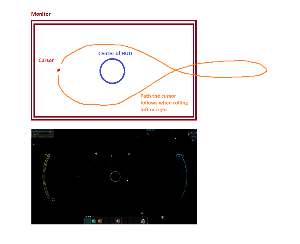 If you roll left or right with your cursor off center, you get weird results. The best I can describe it, is that it also rolls your cursor around the center point...