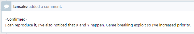 When you have confirmed an issue and added everything that is needed. Make sure your comment contains: