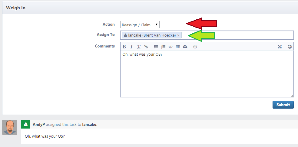 Show you are now picking this up for requesting feedback. Drag it into the "feedback" coloumn.
